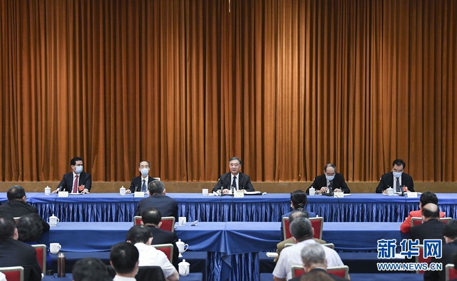 5月23日,中共中央政治局常委、中央書記處書記王滬寧看望出席全國政協(xié)十三屆三次會(huì)議的體育界、醫(yī)藥衛(wèi)生界委員并參加討論。 新華社記者 岳月偉 攝