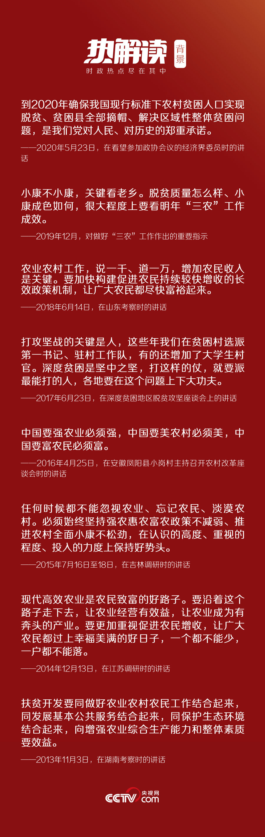 3月6日,在黨的十八大以來脫貧攻堅(jiān)方面最大規(guī)模的會議上,習(xí)近平對脫貧攻堅(jiān)工作再作部署:“這是一場硬仗,越到最后越要緊繃這根弦,不能停頓、不能大意、不能放松。各省區(qū)市都層層簽了軍令狀,承諾了就要兌現(xiàn)。”