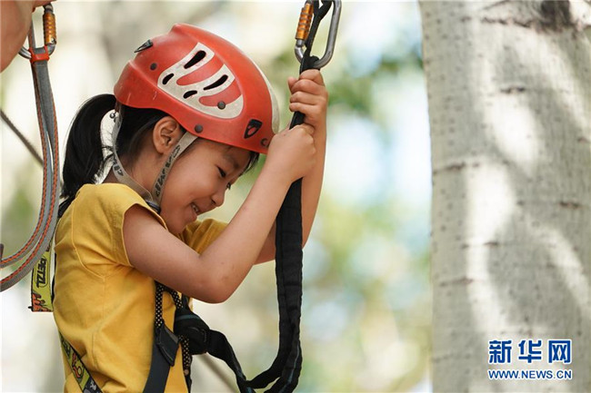 5月31日,小朋友在北京朝陽公園體驗(yàn)戶外運(yùn)動(dòng)。新華社記者 鞠煥宗 攝