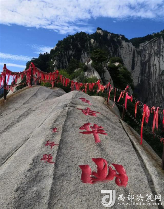 眾所周知 “自古華山一條路”是一道奇觀。這條道路或越澗跨溪,或臨崖盤山,或入崖間深谷,或走峭壁嶺脊,或平坦或曲陡,或?qū)挸ɑ颡M窄,曲折變化,跌宕起伏,把人帶入意境深邃的萬(wàn)般景象之中。道路兩旁遍布的摩崖石刻,使人仿佛走進(jìn)一個(gè)書法藝術(shù)的走廊。一步一景一傳說(shuō),更使華山沿途披上了濃厚的文化色彩。