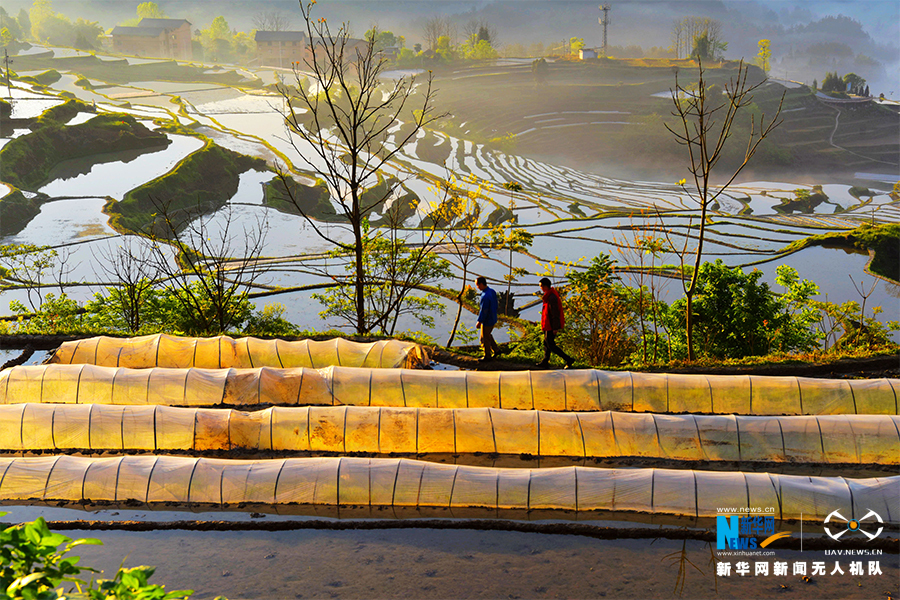 航拍酉陽縣花田鄉(xiāng)梯田。新華網(wǎng)發(fā)(陳碧生 攝)