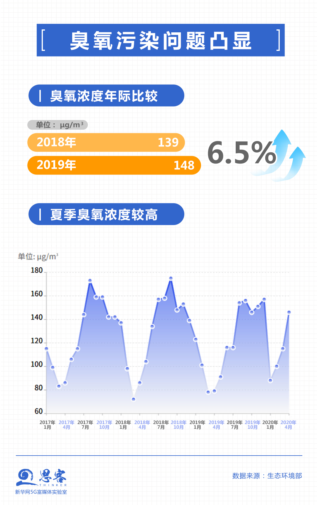 一到夏季,臭氧問題又顯現(xiàn)出來。高濃度臭氧會刺激和損害眼睛、呼吸系統(tǒng)等黏膜組織,危害不容小覷。對空氣質(zhì)量管理來說,臭氧超標(biāo)日數(shù)增多,已成為很多地區(qū)空氣優(yōu)良天數(shù)比例提升的最大拖累。2019年,全國337個地級及以上城市臭氧濃度同比上升6.5%,以臭氧為首要污染物的超標(biāo)天數(shù)占總超標(biāo)天數(shù)41.8%,僅次于PM2.5(占45%)。臭氧濃度大幅上升造成全國空氣質(zhì)量優(yōu)良天數(shù)比例同比損失2.3個百分點(diǎn)。