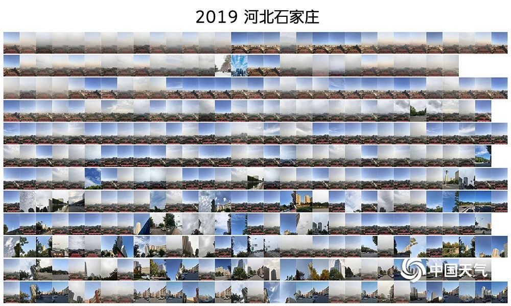 ▲2019年,河北石家莊的“藍(lán)天拼圖”更藍(lán)了。 圖片來源:中國天氣網(wǎng)