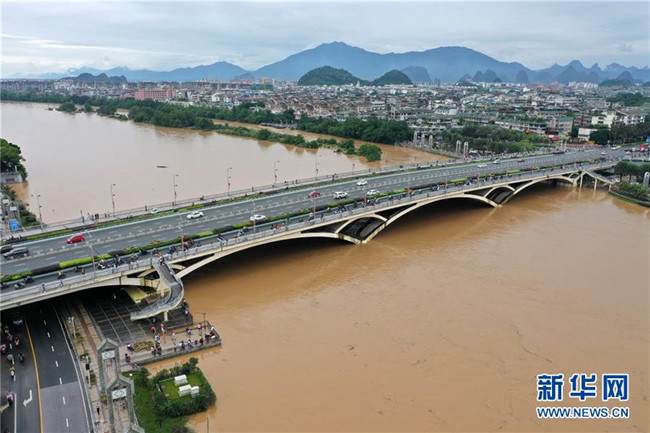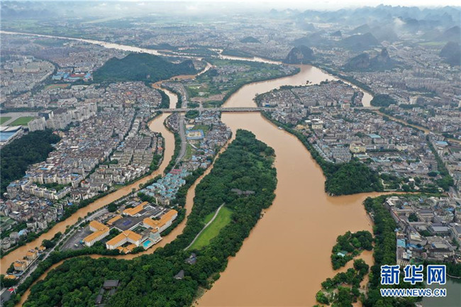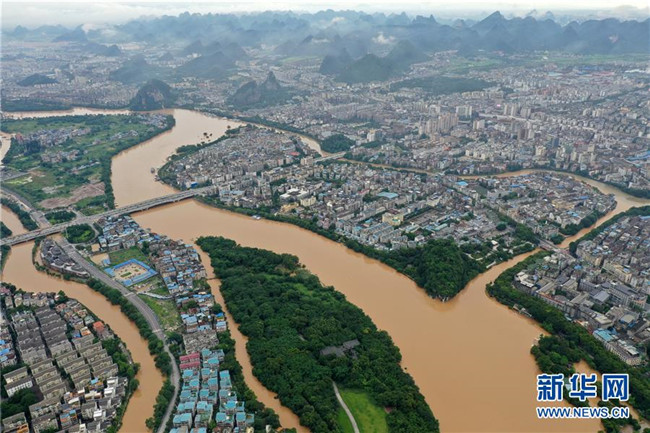 受持續(xù)強(qiáng)降雨影響,漓江桂林水文站于6月9日12時(shí)30分出現(xiàn)146.49米的洪峰水位,超警戒水位0.49米。