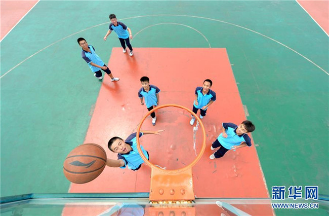 6月22日,河北省邯鄲市邯山區(qū)第一中學(xué)的高三學(xué)生在操場(chǎng)上打籃球。 新華社記者 王曉 攝