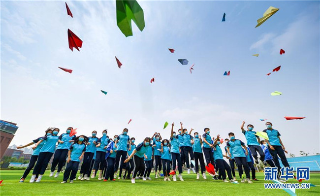 6月22日,河北省邯鄲市邯山區(qū)第一中學(xué)的高三學(xué)生將寫有自己夢(mèng)想的紙飛機(jī)拋向空中。新華社記者 王曉 攝