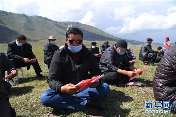 6月20日,在布爾津縣阿貢蓋提草原,牧民在看布爾津縣也格孜托別鄉(xiāng)克孜勒托蓋村家庭醫(yī)生簽約團(tuán)隊(duì)發(fā)放的宣傳材料。圍繞實(shí)現(xiàn)人人享有基本醫(yī)療衛(wèi)生服務(wù)目標(biāo),2016年起,新疆布爾津縣開展家庭醫(yī)生簽約服務(wù)工作。該縣組建家庭醫(yī)生簽約團(tuán)隊(duì)65個(gè),團(tuán)隊(duì)醫(yī)務(wù)人員233名,通過手機(jī)APP、基本公衛(wèi)系統(tǒng)與全縣建檔立卡貧困戶進(jìn)行電子化簽約,提升村醫(yī)隨訪的工作效率和質(zhì)量。截至目前,已完成簽約42936人,履約40043人。新華社記者沙達(dá)提攝