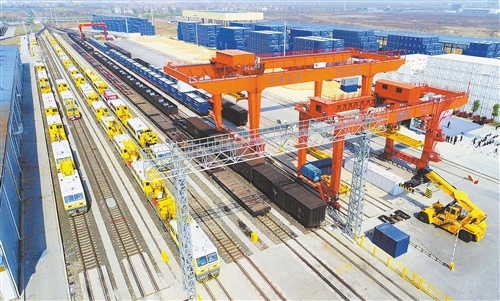 湖北襄陽自貿(mào)片區(qū)內(nèi)襄北編組站發(fā)出貨運班列。 (資料圖片)