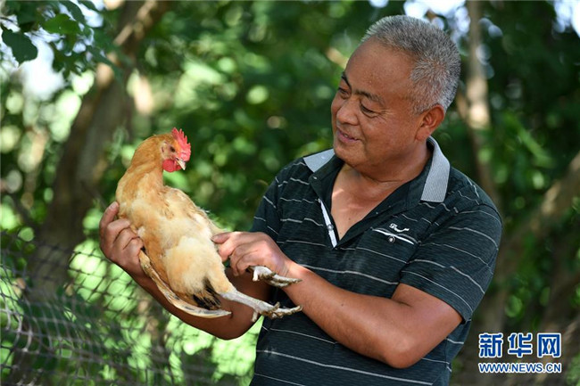 6月26日,在肥西縣花崗鎮(zhèn)楊灣村的土雞養(yǎng)殖基地里,黃榮春在查看土雞長(zhǎng)勢(shì)。新華社記者 劉軍喜 攝