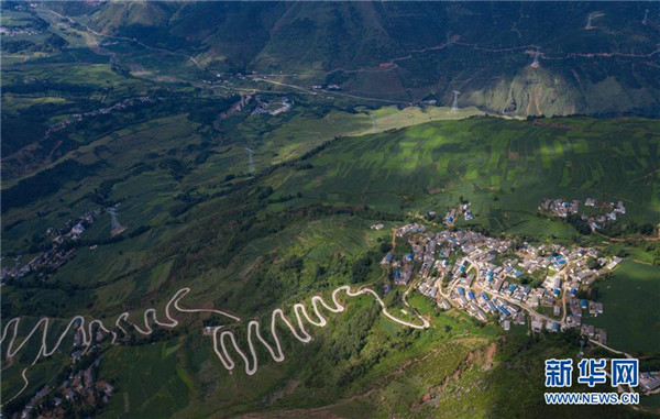 這是6月28日無人機(jī)拍攝的四川省布拖縣美撒鄉(xiāng)莫此村一角。新華社記者江宏景攝