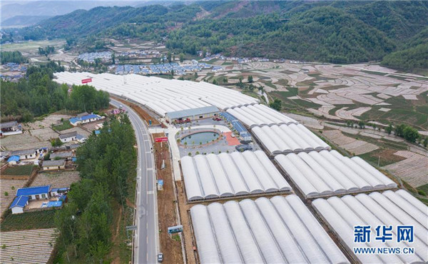 俯瞰四川省布拖縣拉達(dá)鄉(xiāng)特爾村的集中安置點(diǎn)和農(nóng)業(yè)示范園區(qū)(5月18日攝,無人機(jī)照片)。新華社記者江宏景攝