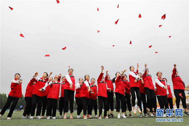 2020年7月3日,河南省溫縣一中高三學(xué)生在學(xué)校操場(chǎng)上做減壓游戲。 2020年全國高考即將拉開帷幕,同學(xué)們從容應(yīng)對(duì),以良好的狀態(tài)迎接高考的到來。 新華社發(fā)(徐宏星 攝)
