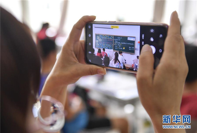 7月6日,吉林省孤兒學(xué)校高三年級(jí)班主任吳東輝用手機(jī)拍攝學(xué)生們寫(xiě)給她的“請(qǐng)假條”。 新華社記者 許暢 攝