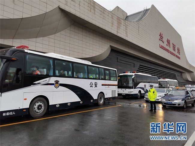 7月11日19時,在位于蘭州市區(qū)的蘭州西站,137名犯罪嫌疑人在警方押解下走下列車,這僅是蘭州警方破獲的一起特大電信網(wǎng)絡詐騙案的部分犯罪嫌疑人。由于犯罪嫌疑人較多,警方調(diào)派多輛大巴車在火車站等候押送。