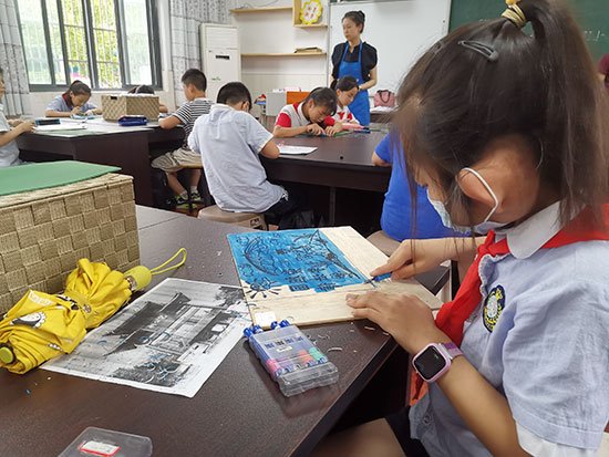 在該校,版畫社團就將美育與勞動教育進行了融合。美術老師王帆介紹,版畫的創(chuàng)作需經(jīng)過起稿、印板、刻制、拓印等多個步驟,整個創(chuàng)作過程可以鍛煉學生的細心、耐心和邏輯思維。