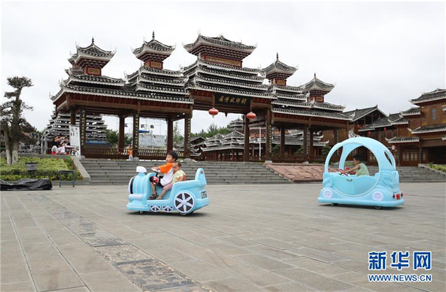 7月19日,在貴州省銅仁市玉屏侗族自治縣田坪鎮(zhèn)侗鄉(xiāng)風(fēng)情園內(nèi),易地扶貧搬遷小朋友在玩耍。新華社發(fā)(胡攀學(xué) 攝)