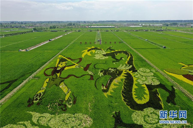 近日,寧夏銀川市賀蘭縣的稻漁空間鄉(xiāng)村生態(tài)觀光園的稻田畫進(jìn)入最佳觀賞期,園內(nèi)題材多樣的稻田畫成為一道別致的鄉(xiāng)村景觀。