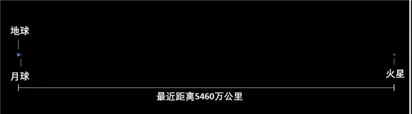 ▲最近時火星和地球的距離相比于地月距離的比例。來源:果殼