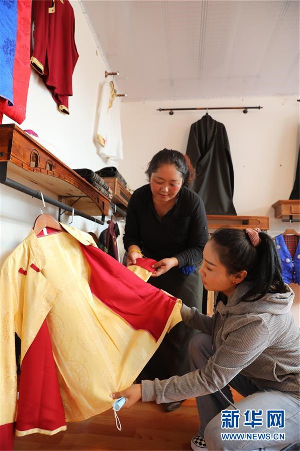7月23日,在甘肅省甘南藏族自治州夏河縣??奇?zhèn)崗岔村的扶貧車間內(nèi),卓瑪吉(右)和扶貧車間負(fù)責(zé)人研究成衣款式。崗岔村是甘肅省甘南藏族自治州夏河縣桑科鎮(zhèn)的一個(gè)牧業(yè)村,平均海拔3000米以上。2018年,在夏河縣文明辦工作的卓瑪吉開(kāi)始擔(dān)任駐村幫扶工作隊(duì)隊(duì)長(zhǎng),每年都有200多天待在草原上。兩年來(lái),卓瑪吉帶領(lǐng)大家開(kāi)辦扶貧車間,發(fā)展特色產(chǎn)業(yè),聯(lián)系勞務(wù)輸出。為了讓村民更全面地了解精準(zhǔn)扶貧政策,卓瑪吉登門宣講政策。為了提高村容村貌,卓瑪吉發(fā)動(dòng)大家開(kāi)展廁所革命和庭院環(huán)境評(píng)比,積極響應(yīng)甘南藏族自治州“全域無(wú)垃圾”創(chuàng)建行動(dòng)。她還從縣城請(qǐng)來(lái)醫(yī)生,為村民舉辦健康講座,在全村婦女中開(kāi)展“兩癌篩查”。如今,崗岔村變成了干凈、整齊、富裕、美麗的生態(tài)文明村,提前實(shí)現(xiàn)了整村脫貧。談起心愿,卓瑪吉說(shuō):“要讓草原和草原上的人都變得更美。”新華社發(fā)(杜哲宇攝)