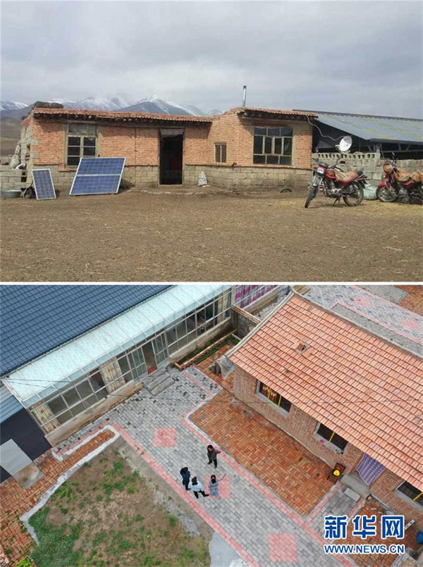 拼版照片:上圖為崗岔村村民才讓扎西在易地扶貧搬遷之前居住的房子(資料照片)。下圖為才讓扎西易地扶貧搬遷后的新家(7月23日攝,無(wú)人機(jī)照片)。新華社發(fā)(杜哲宇攝)崗岔村是甘肅省甘南藏族自治州夏河縣??奇?zhèn)的一個(gè)牧業(yè)村,平均海拔3000米以上。2018年,在夏河縣文明辦工作的卓瑪吉開(kāi)始擔(dān)任駐村幫扶工作隊(duì)隊(duì)長(zhǎng),每年都有200多天待在草原上。兩年來(lái),卓瑪吉帶領(lǐng)大家開(kāi)辦扶貧車間,發(fā)展特色產(chǎn)業(yè),聯(lián)系勞務(wù)輸出。為了讓村民更全面地了解精準(zhǔn)扶貧政策,卓瑪吉登門宣講政策。為了提高村容村貌,卓瑪吉發(fā)動(dòng)大家開(kāi)展廁所革命和庭院環(huán)境評(píng)比,積極響應(yīng)甘南藏族自治州“全域無(wú)垃圾”創(chuàng)建行動(dòng)。她還從縣城請(qǐng)來(lái)醫(yī)生,為村民舉辦健康講座,在全村婦女中開(kāi)展“兩癌篩查”。如今,崗岔村變成了干凈、整齊、富裕、美麗的生態(tài)文明村,提前實(shí)現(xiàn)了整村脫貧。談起心愿,卓瑪吉說(shuō):“要讓草原和草原上的人都變得更美。”新華社發(fā)