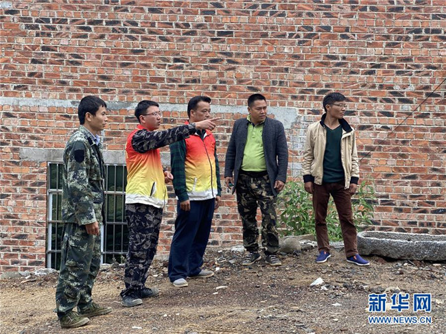 廣西田林縣八渡瑤族鄉(xiāng)六林村駐村第一書(shū)記牟海迪(左二)與村干部一起籌劃村里道路建設(shè)(2020年4月24日攝)。 新華社記者 林凡詩(shī) 攝