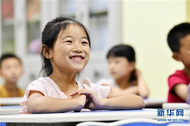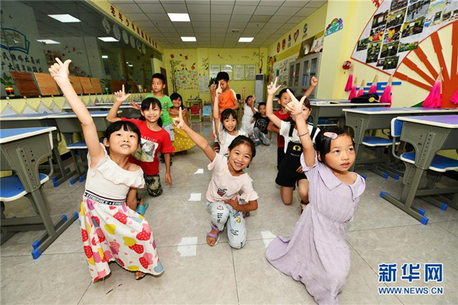 8月13日,貴州省思南縣雙塘街道麗景社區(qū)易地扶貧搬遷安置點的孩子在上音樂課。新華社記者 楊文斌 攝