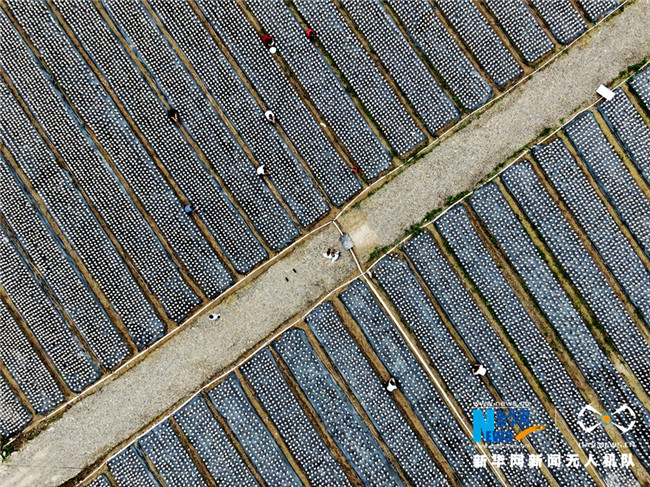 甘肅省宕昌縣好梯鄉(xiāng)地處林緣地帶,氣候溫暖潮濕,非常適宜菌類生長(zhǎng)。在好梯鄉(xiāng)麻子溝扶貧產(chǎn)業(yè)園中黑木耳長(zhǎng)勢(shì)喜人,一排排整齊排列的菌棒構(gòu)成一幅美麗畫卷。目前,第一批耕地種植黑木耳6萬袋,年產(chǎn)黑木耳3噸,第二批擬在今年9月份新建鋼架大棚24個(gè),吊袋種植黑木耳21萬袋,年產(chǎn)黑木耳10.5萬噸。新華網(wǎng)發(fā)(劉輝 攝)