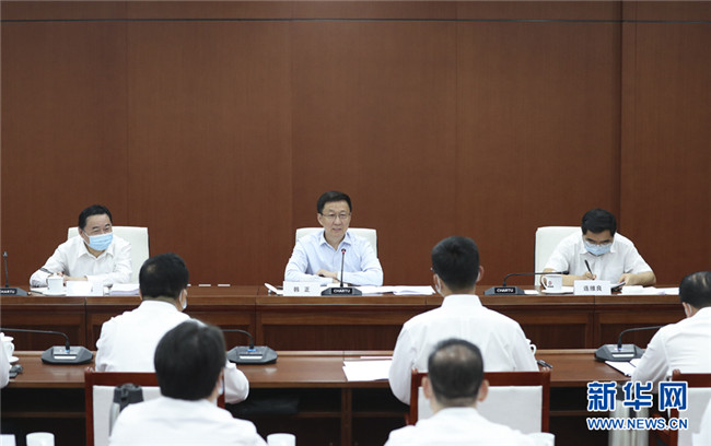 8月18日,中共中央政治局常委、國務院副總理韓正在國家石油天然氣管網集團有限公司調研并主持召開座談會。 新華社記者 丁海濤 攝