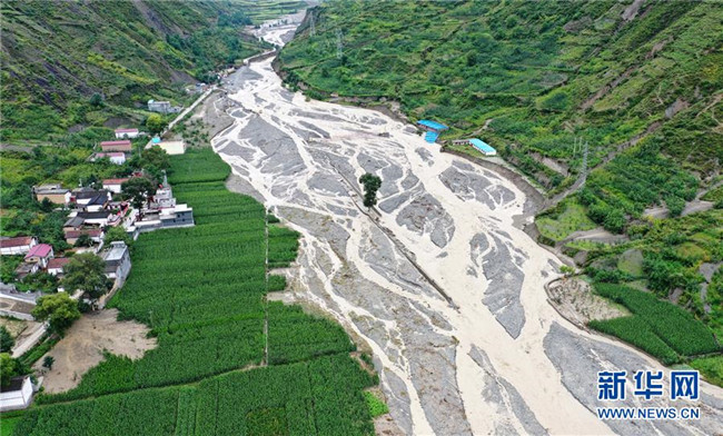 這是8月23日拍攝的舟曲縣被毀農(nóng)田和道路(無人機(jī)照片)。 新華社記者 郎兵兵 攝