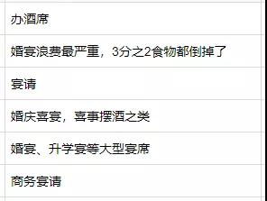 在調(diào)查問卷的后臺留言中,不少受訪者留言說,同學(xué)會、紅白宴、生日宴、升學(xué)宴、商務(wù)宴請等浪費量較高,甚至有人說“三分之二的食物都倒掉了”。
