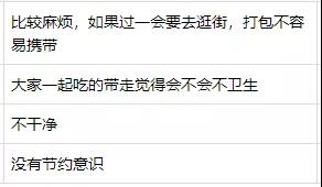 打包不合適、太麻煩、沒面子,這些是受訪者認為在外就餐不愿打包剩菜的主要原因。“我不是宴會的主辦者,我打包不合適,好像我占便宜似的”“同桌的人一起夾過的菜,打包不衛(wèi)生”“穿著西裝打著領(lǐng)帶,手上拿著打包盒很奇怪”“中午食堂的剩菜又沒有打包盒裝,下午又沒地方放,沒人會打包帶走”,這樣的受訪者留言在后臺還有不少。