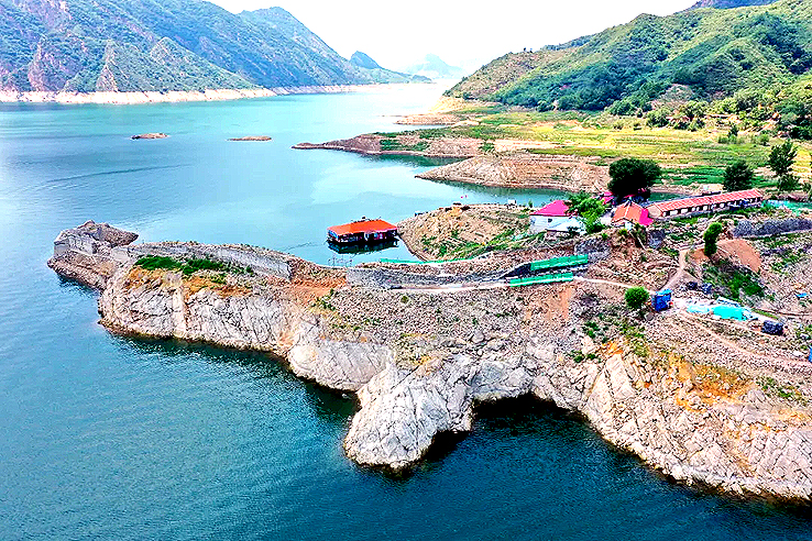 戚輝介紹,由于水庫(kù)位于燕山山脈沉降地帶東南構(gòu)造帶與華夏構(gòu)造帶的復(fù)合部位,地質(zhì)構(gòu)造復(fù)雜,四周的石灰?guī)r、白云巖及少部分頁巖巖體,由于流水侵蝕與褶皺斷裂作用,塑造出一系列奇峰怪石與陡崖懸壁,是北國(guó)極為罕見的山水風(fēng)光。