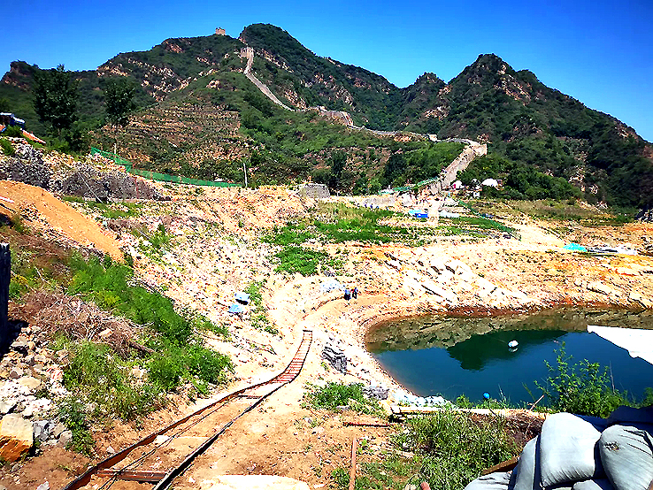 項(xiàng)目現(xiàn)場(chǎng)施工負(fù)責(zé)人表示,這段長(zhǎng)城的修繕,其實(shí)不是修繕已經(jīng)完全淹入水下的部分,而是修繕露在水面之上的部分,或者說是在枯水季節(jié)能露在水面之上的部分。但因處于水庫(kù)旁,施工材料通過陸路、水路、山路才能到達(dá)施工現(xiàn)場(chǎng),修繕難度極大。