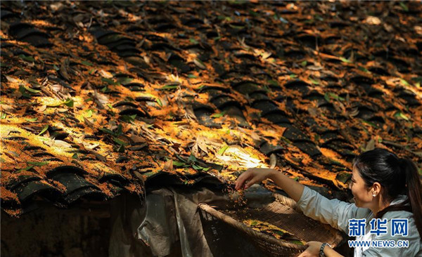 9月24日,四川省瀘州市江陽區(qū)鄰玉街道天堂村的村民在收撿散落在房頂上的桂花。金秋時節(jié),四川省瀘州市江陽區(qū)鄰玉街道天堂村的村民們忙著打收桂花,制作桂花糕等美食,迎接中秋佳節(jié)的到來。新華社發(fā)(劉學懿攝)