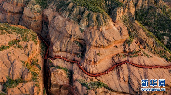 游人在靖邊縣龍洲鎮(zhèn)波浪谷丹霞景區(qū)游覽(9月26日攝)。新華社記者 陶明 攝