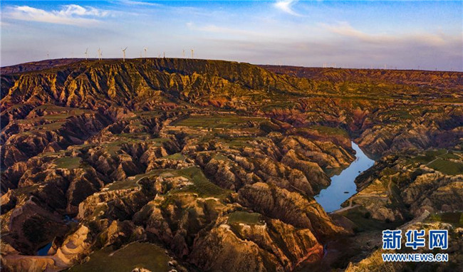 靖邊縣龍洲鎮(zhèn)波浪谷丹霞景區(qū)晨景(9月24日攝,無人機(jī)照片)。新華社記者 陶明 攝