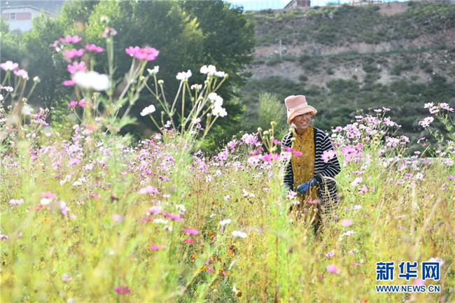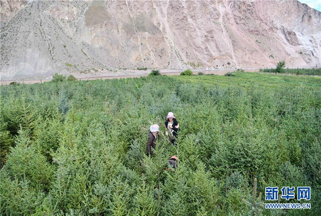 西藏昌都察雅縣卡貢鄉(xiāng)卡貢村村民在苗圃產(chǎn)業(yè)基地進行除草作業(yè)(9月28日攝)。新華社記者 晉美多吉 攝