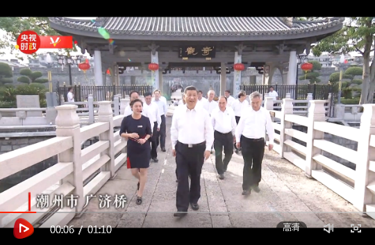 習近平總書記12日赴廣東考察調(diào)研。當天下午,他首先考察了潮州市廣濟橋、廣濟樓、牌坊街,察看文物修復保護、非遺文化傳承、文旅資源開發(fā)等情況。隨后,習近平前往潮州三環(huán)(集團)股份有限公司,了解企業(yè)自主創(chuàng)新和生產(chǎn)經(jīng)營情況。