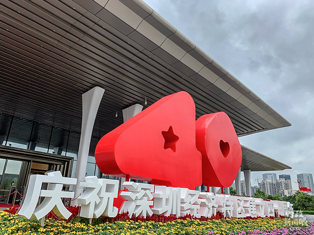 △“40”是慶祝大會(huì)當(dāng)天最醒目、設(shè)計(jì)最獨(dú)特的數(shù)字。4里面是一顆五角星,取自五星紅旗,0里面是一顆愛(ài)心,這個(gè)標(biāo)識(shí)的名字叫做“星心相映”,寓意著深圳是一顆明日之星,也是一座愛(ài)心之城。(總臺(tái)央視記者程鋮拍攝)