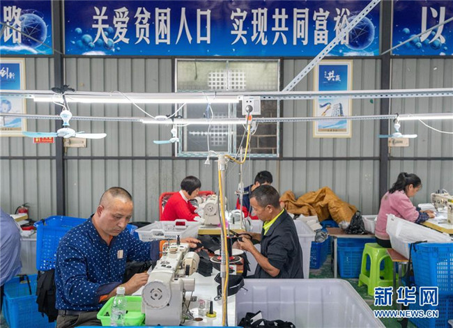 10月13日,在湖南省邵陽市城步縣殘疾人楊淑亭開辦的湖南七七科技股份有限公司生產(chǎn)車間里,工人們在制作民族特色背包。1991年出生的苗族姑娘楊淑亭因車禍胸部以下高位截癱,通過不斷學(xué)習(xí)摸索,開辦網(wǎng)店并注冊了自己的企業(yè),與周邊貧困家庭簽訂合作協(xié)議,制作售賣具有民族特色的背包和仿真花卉,帶動(dòng)上千名貧困人員及59名殘疾人就業(yè)。