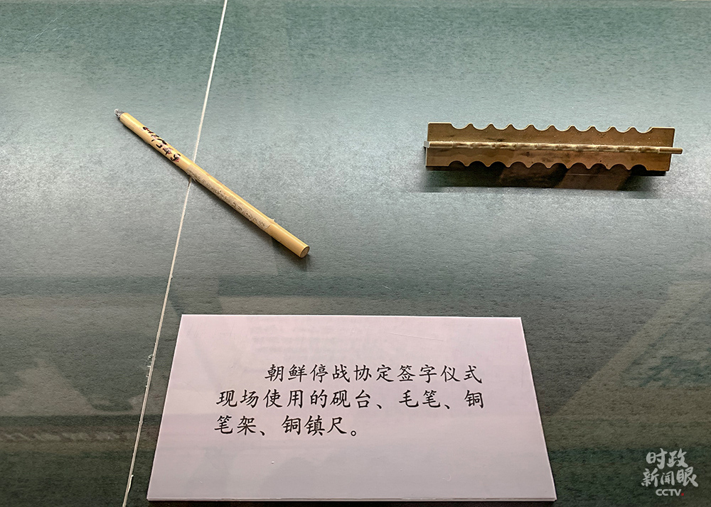 △朝鮮停戰(zhàn)協(xié)定簽字儀式現(xiàn)場使用的文具(總臺(tái)央視記者石丞拍攝)