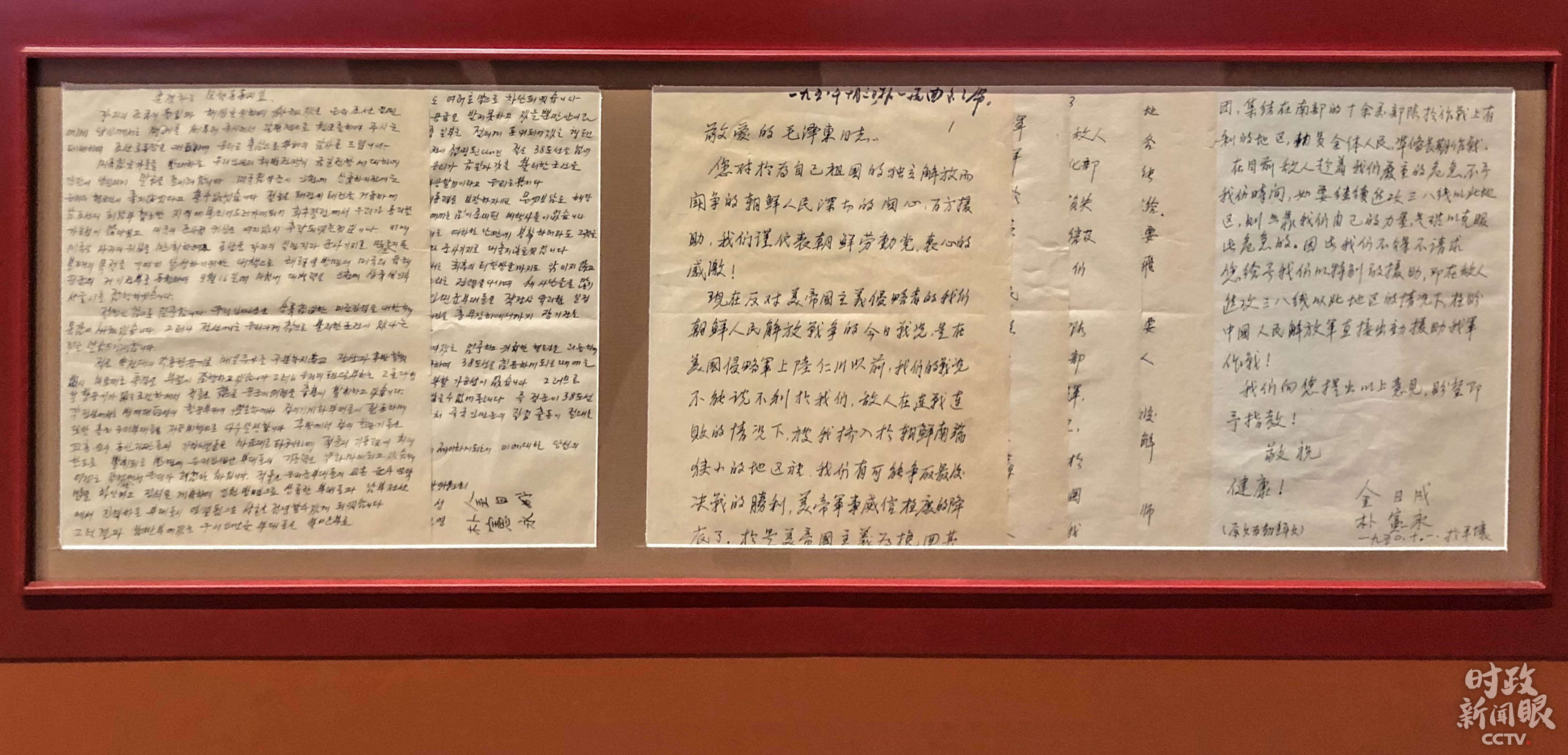 △這是1950年10月1日,金日成請求中國出兵援助朝鮮的信函和譯文。(總臺(tái)央視記者許永松拍攝)