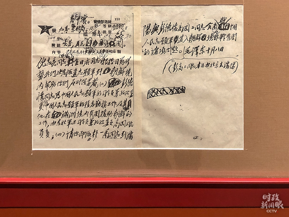 △1950年10月8日,毛主席致電金日成,告知中國政府決定出兵援朝。(總臺(tái)央視記者許永松拍攝)