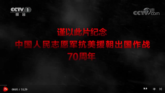 為紀(jì)念中國人民志愿軍抗美援朝出國作戰(zhàn)70周年,經(jīng)中央軍委批準(zhǔn),中央軍委政治工作部組織拍攝了6集大型電視紀(jì)錄片《為了和平》。第五集《萬眾一心》主要反映全國各條戰(zhàn)線和廣大人民積極響應(yīng)黨和政府號召,開展了轟轟烈烈的抗美援朝運動,支援前線、支援戰(zhàn)爭,中朝兩國人民和軍隊密切配合、團(tuán)結(jié)戰(zhàn)斗,形成了同仇敵愾、戰(zhàn)勝一切困難和強大敵人的無窮力量。