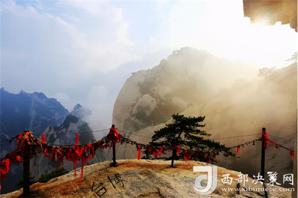 華山日出亦被列為華山自然風(fēng)光中的重要景觀之一。是時(shí),但見夜幕自東方悄然隱退,晨曦初露,漸漸霞光瑰麗,云源奔涌。瞬間,一輪火球噴薄而出,繼而光芒四射,氣象萬千,整個(gè)世界大放光明,游人身心為之一振。待云霧散盡,蒼松翠柏,則更加清麗悅目,美妙神奇。故而,游名山者必登華山,登華山者必觀日。