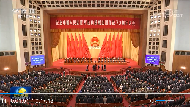 紀(jì)念中國人民志愿軍抗美援朝出國作戰(zhàn)70周年大會(huì)在京隆重舉行 習(xí)近平發(fā)表重要講話