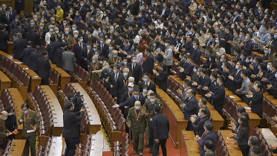 △紀(jì)念大會結(jié)束后,老英雄們陸續(xù)離場。(總臺央視記者王威拍攝)
