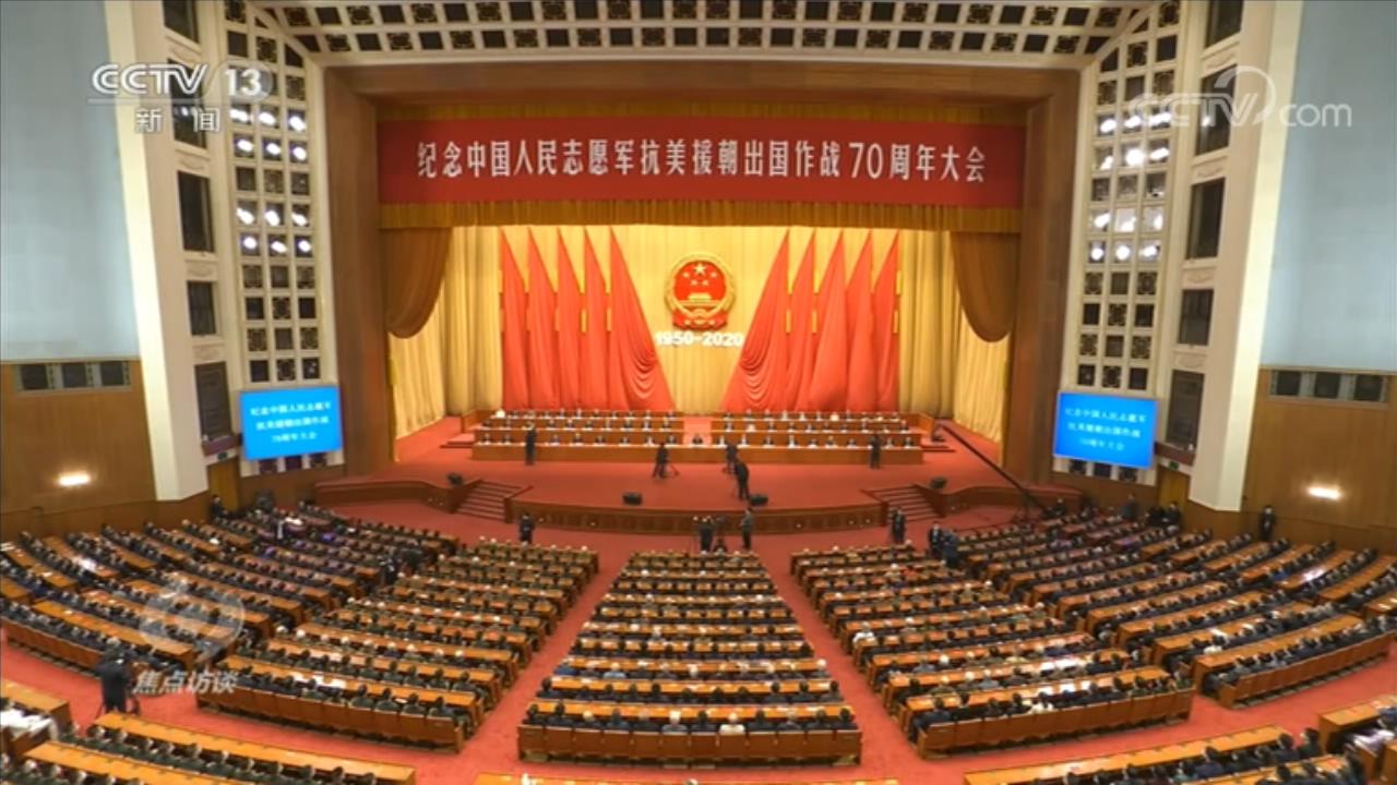 央視網(wǎng)消息(焦點訪談):70年前,面對武裝到牙齒的強敵,由中華民族優(yōu)秀兒女組成的中國人民志愿軍,雄赳赳、氣昂昂,跨過鴨綠江,開始了兩年零9個月艱苦卓絕的浴血奮戰(zhàn)。70年來,我們始終沒有忘記老一輩革命家為維護國際正義、捍衛(wèi)世界和平、保衛(wèi)新生共和國所建立的不朽功勛,始終沒有忘記譜寫了氣壯山河英雄贊歌的中國人民志愿軍將士以及所有為這場戰(zhàn)爭勝利作出貢獻的人們,始終沒有忘記在戰(zhàn)爭中英勇犧牲的烈士們。23日上午,紀念中國人民志愿軍抗美援朝出國作戰(zhàn)70周年大會在人民大會堂隆重舉行,中共中央總書記、國家主席、中央軍委主席習近平在會上發(fā)表重要講話。