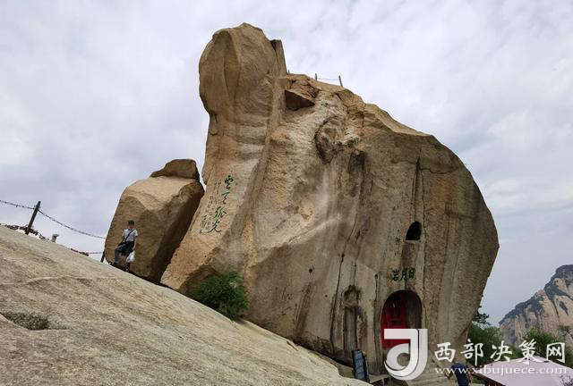華山的美是“他”昂揚風(fēng)姿、冠絕五岳的那份傲氣。華山的韻是“他”看不盡、摸不透的那份神秘。就在這萬般火熱而五彩的氛圍中,就在這千百年的磨礪里,兩塊佇立在山中的一大一小的巨石更引起了探秘者的好奇和興趣。