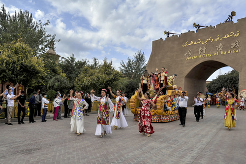 新疆喀什古城景區(qū)舉行開(kāi)城儀式,歡迎游客入城游覽(9月11日攝)。新華社記者 馬鍇 攝